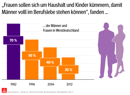 Gesellschaftlicher Wandel ganz konkret: Was die einen als Emanzipation feiern (zu recht, wie wohl anzunehmen ist), beklagen andere als Last, nämlich als Doppelbelastung durch Arbeit und "für die Familie da sein". Denn der Mann "im Heim und am Herd", dieser Wandel fand nicht statt ... :-( |