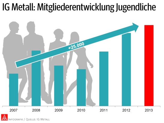 Von wegen, Gewerkschaft sei nur etwas für die älteren in diesem Land. Die Notwendigkeit einer starken Gewerkschaft wird wieder zunehmend von jungen Menschen erkannt. Entsprechend verjüngt sich auch die IGMetall. |